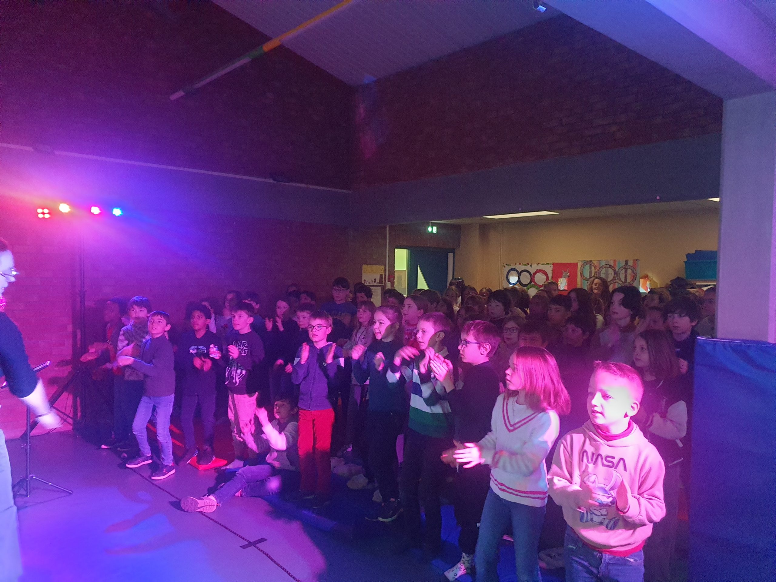 Lundi 16 juin, les élèves de la PS au CP ont assisté au spectacle « Sur la piste des Arts ». Les CP vous racontent :