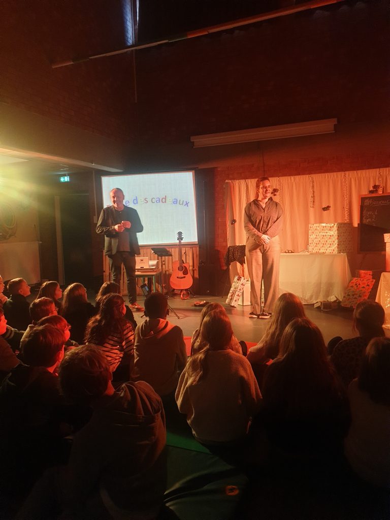 Les élèves ont beaucoup ri, chanté, participé, et se sont laissés porter par l’énergie communicative des comédiens. Ce fut un beau moment de partage, simple et lumineux, qui a permis à chacun — petits et grands — de vivre une parenthèse joyeuse et pleine de sens au cœur de la semaine.